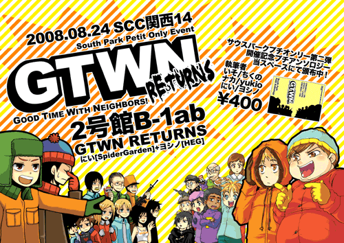 にいさんとダブル主催のサウスプチオンリーでございます!当日は上記の本部スペースにてお待ちしております。売り子は4人体制ぐらいでローテーション組んで席を外す事もあると思いますが、基本的に私ヨシノはスペースにおります。