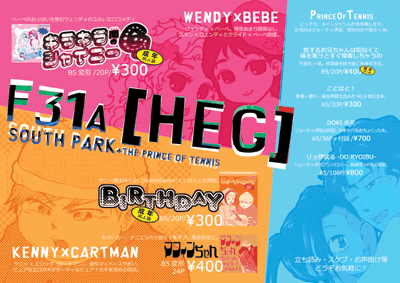 東1・F-31a 【HEG】当日はヨシノが初めてのサウス島参加にざわつきつつもビシッと待受けております。